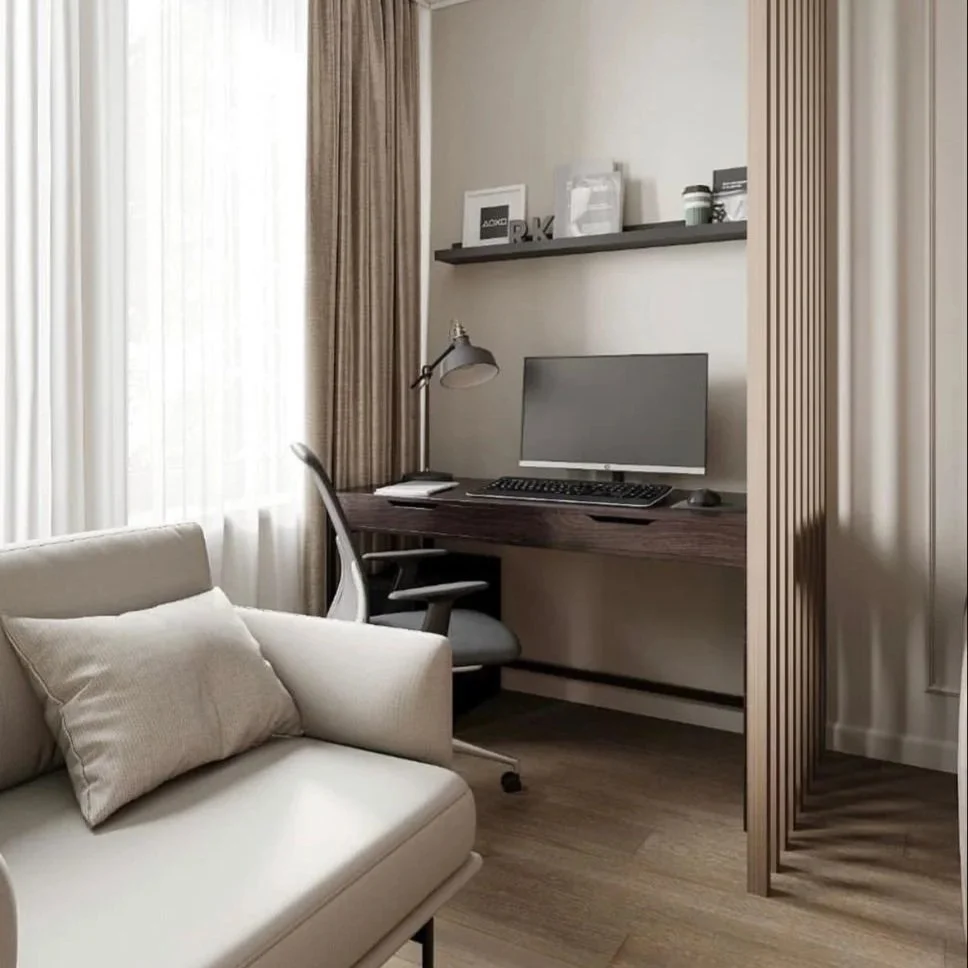 Ya no se necesita una habitación exclusiva como despacho. Salones, dormitorios o incluso pasillos se transforman en zonas de trabajo con mobiliario plegable, escritorios flotantes o muebles modulares que permiten reorganizar el espacio según la necesidad del momento.